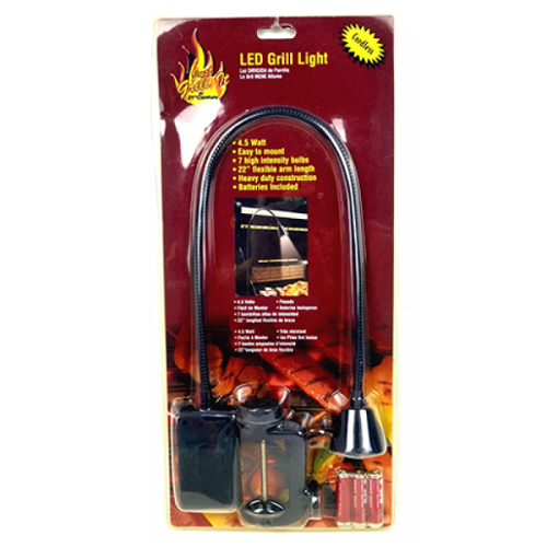4.5 watt, easy to mount, 10 high intensity bulbs, 22" flexible arm, batteries included.