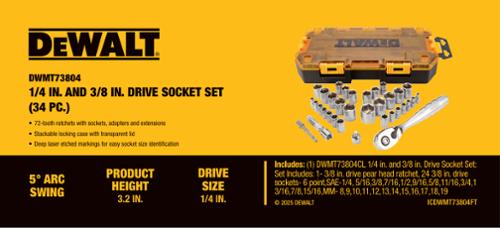 1 3/8 in drive pear head ratchet,7 1/4 in drive SAE sockets,7 1/4 in drive metric sockets,8 3/8 in drive SAE sockets,8 3/8 in drive metric sockets,1 3 in extension,1 reducing adapter,1 drill adapter,locking hard case with removable tray
